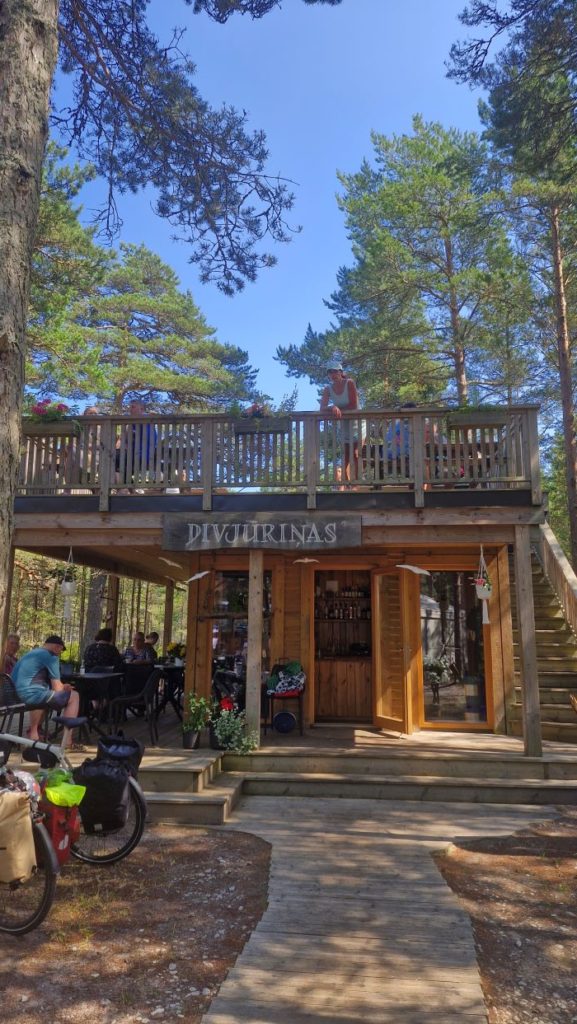 Niestety ten nasz spontaniczny plan zobaczenia przylądka miał jedną wadę: był za krótki i trzeba było wracać i jechać dalej. Na szczęście podjęliśmy tam jeszcze jedną dobrą decyzję: zjedzmy na miejscu, choć wiadomo, że w takich lokalizacjach i małej drewnianej restauracji, która w promieniu 20-30km nie ma konkurencji – trudno spodziewać się kulinarnych cudów. No i wtedy kolejne duże pozytywne zaskoczenie i duży plus dla tego miejsca: Restauracja Divjurinas okazała się naprawdę przepysznym miejscem.
