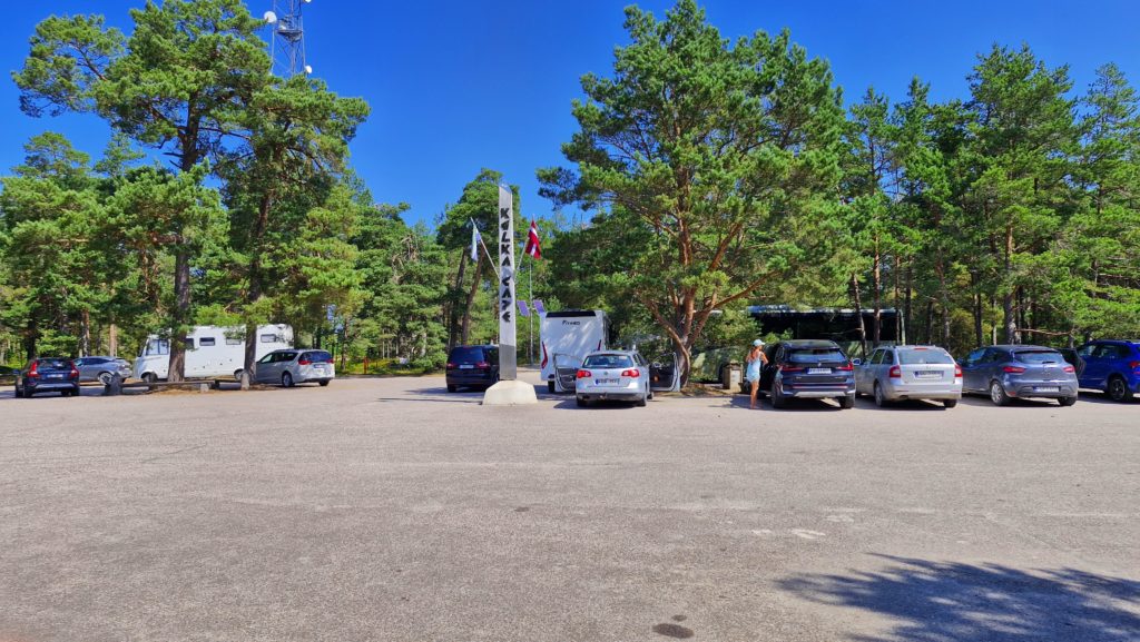 Jak już dojedziecie prawie na miejsce na rondzie możecie wybrać darmowy ( trochę dalej ) lub płatny ( 2euro za godzinę) parking kilka kroków od szczytu przylądka. My wybraliśmy opcje płatną i dzięki temu dowiedzieliśmy się, że można tam tez nocować w aucie czy camperze za 10/15 euro za dobę – brzmi jak plan ;)). Na parkingu jest sklep z pamiątkami, i regionalnym przysmakami ( zdecydowanie polecam wędzone szproty w olej lub pomidorach ), łazienki z prysznicem oraz restauracja – o niej też dopiero za chwilę, bo najważniejszy jest jednak sam Przylądek Kolka miejsce styku Morza Bałtyckiego i Zatoki Ryskiej