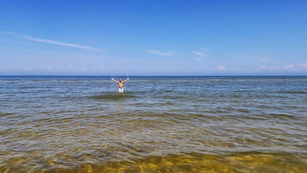 Nasza ostatnia podróż miała być rekonesansem dawnych nadbałtyckich republik i sprawdzeniem czy nadłożenie kilometrów ( w stosunku do polskiego wybrzeża ) ma sens. Łotewskie wybrzeże zdało egzamin celująco a najjaśniejszym punktem był Przylądek Kolka – nie planowany wcześniej i mieliśmy tam tylko kilka godzin – ale to była miłość od pierwszego spojrzenia. Dzikie tereny, złoty piasek, ciepłe i płytkie wody morza bałtyckiego i zatoki ryskiej. Do tego dobrze zlokalizowany parking z pełnym węzłem sanitarnym, urocza restauracja z pysznym jedzeniem. A na deser bursztyny i wygrzewająca się na kamieniach młoda foka.